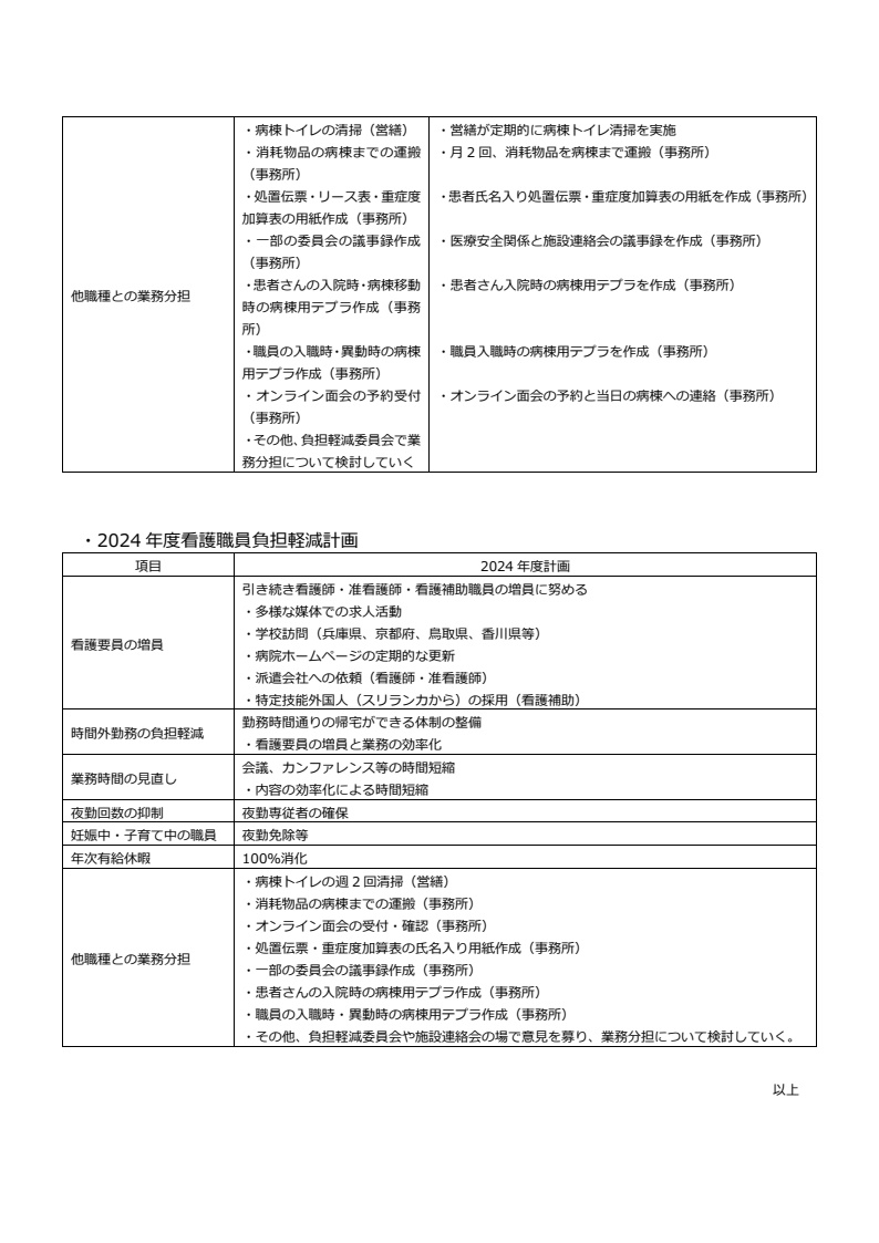 ・入院患者さん10人に対して平均1人以上の看護補助者が勤務しています。